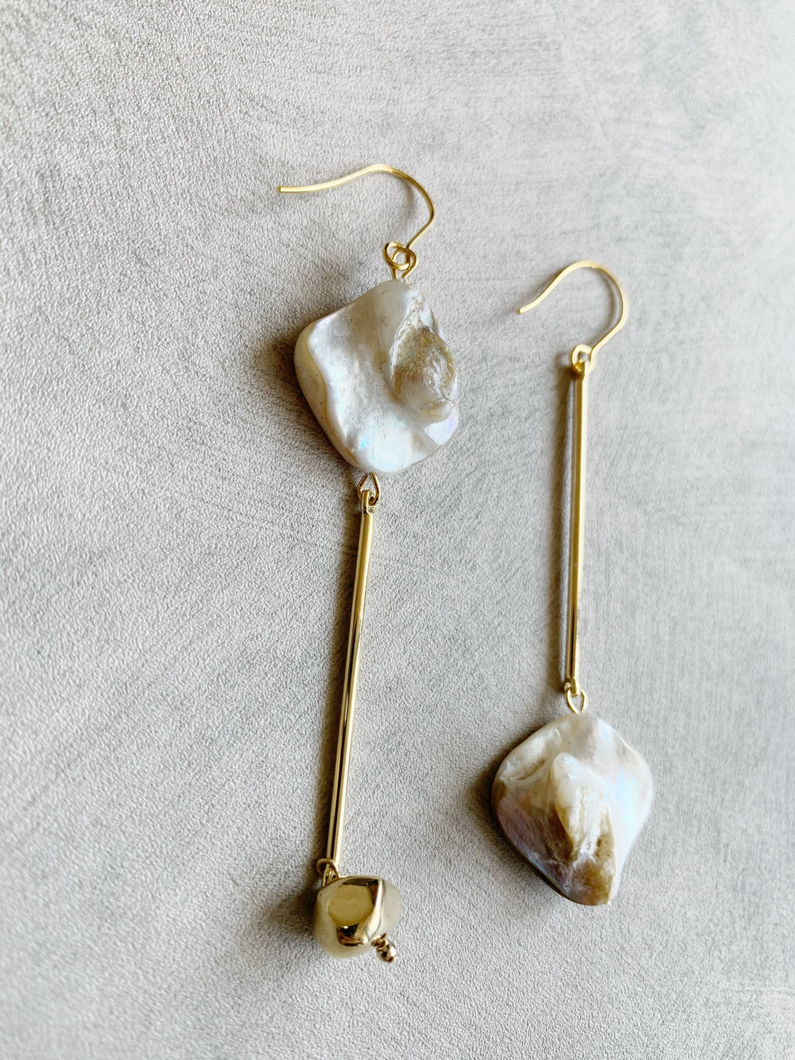 シェルパーツを使用したアシンメトリーなシンプルアクセサリー