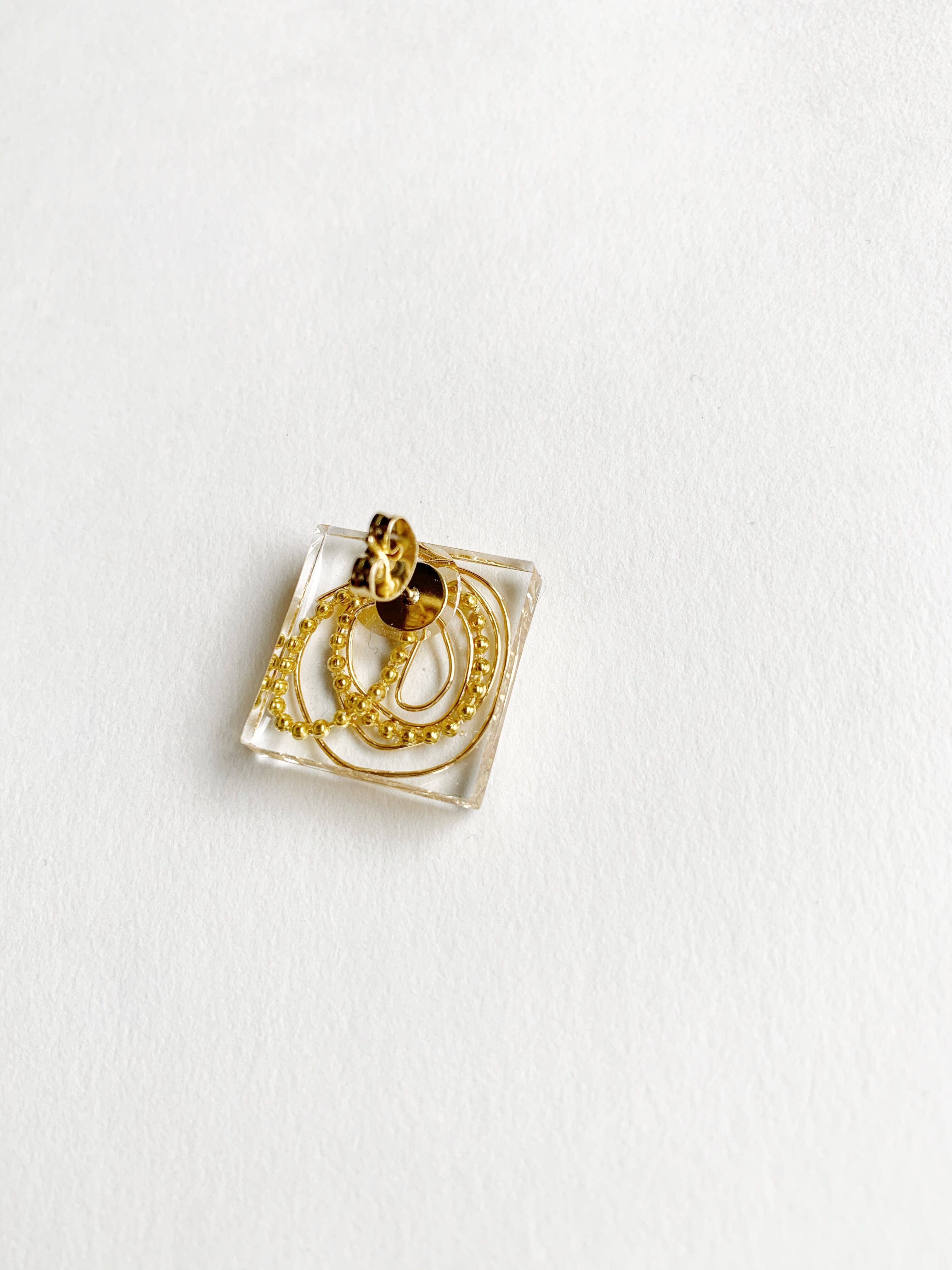 ワイヤーとボールチェーンを不規則なながれを意識しながらクリア素材の中へ…